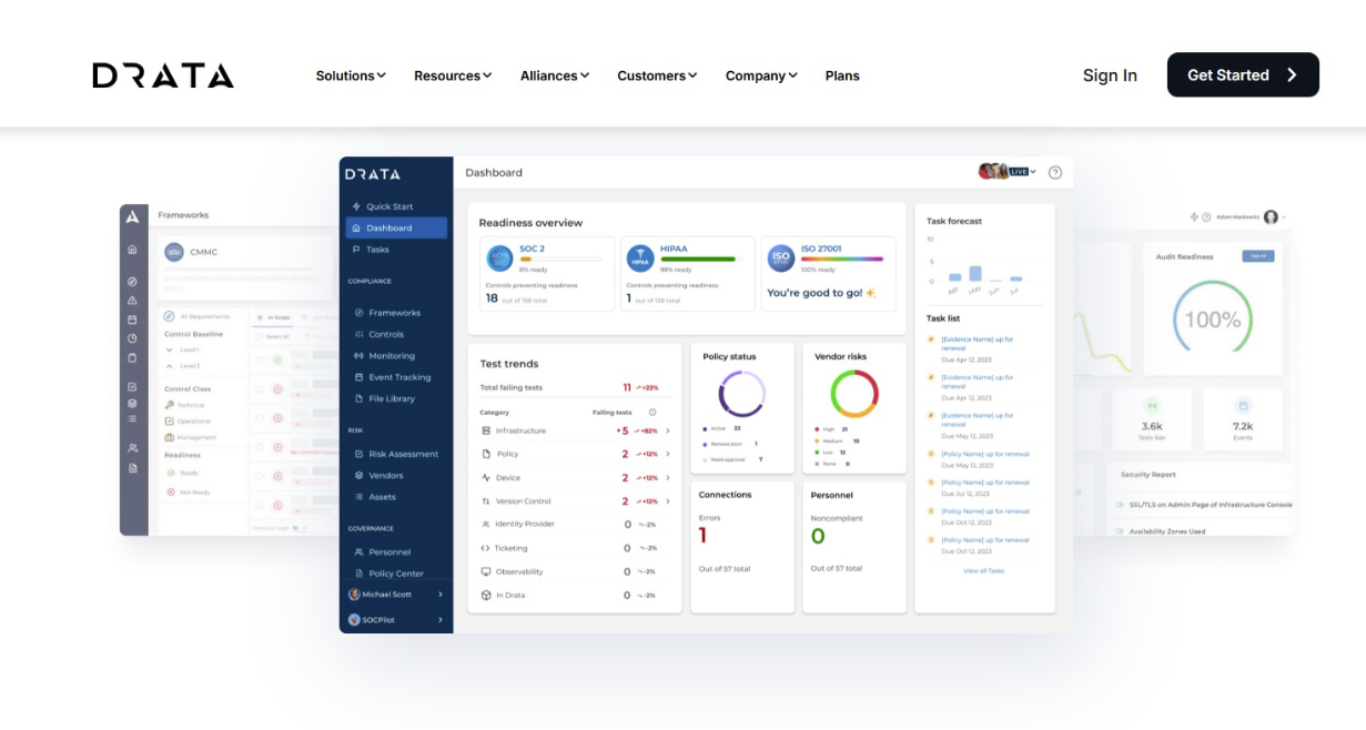 Best for: Organizations prioritizing audit readiness and multi-framework compliance automation.