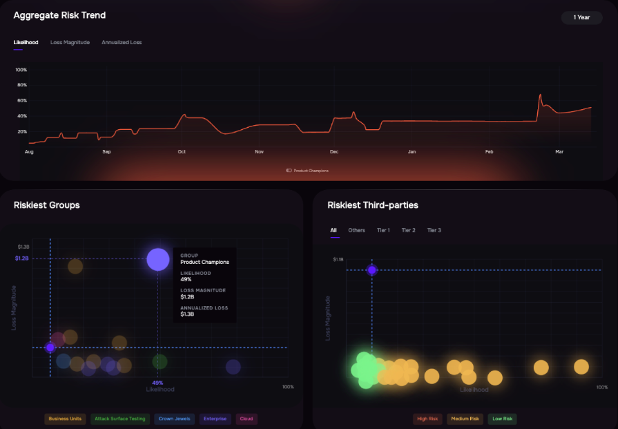 SAFE Security is a cyber risk quantification platform that translates security risks into financial impact. It uses FAIR-based models and scenario analysis to estimate potential losses across enterprise, third-party, and emerging risk areas such as AI. Where it stands out is in decision support. Instead of prioritizing risk based on severity or compliance gaps, SAFE enables teams to quantify exposure in monetary terms, helping security leaders communicate clearly with executives and make risk-informed investment decisions.