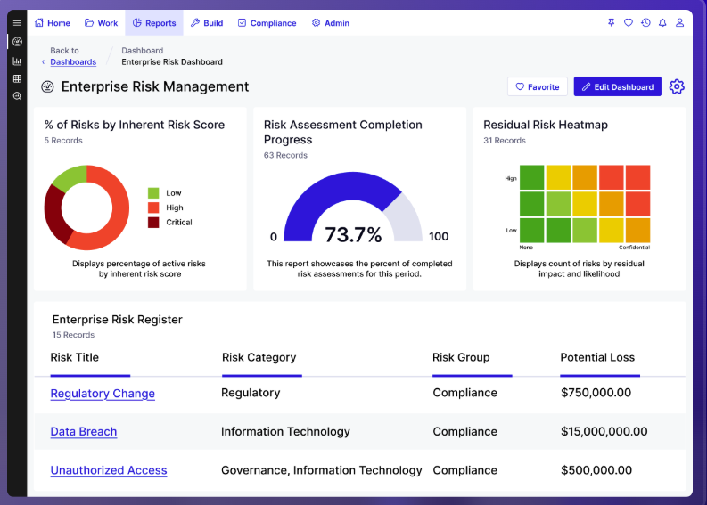 Best for: Organizations that need a highly configurable GRC platform to support multiple risk programs within a single system.