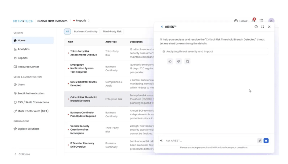 Mitratech is a broader legal, risk, and compliance platform that includes third-party risk management as part of its wider suite. Its TPRM capabilities support structured vendor governance within enterprise environments, including vendor onboarding workflows, risk tiering, due diligence questionnaires, issue tracking, and audit reporting, all integrated with broader legal and compliance processes. A key strength is its alignment with enterprise governance functions. However, the platform is primarily workflow- and governance-driven.